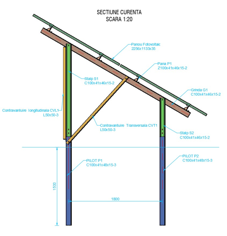 Sistemul de montaj utilizează profile metalice tip C fabricate din oțel structural de înaltă calitate, cu un strat de zincare pentru protecție împotriva coroziunii.